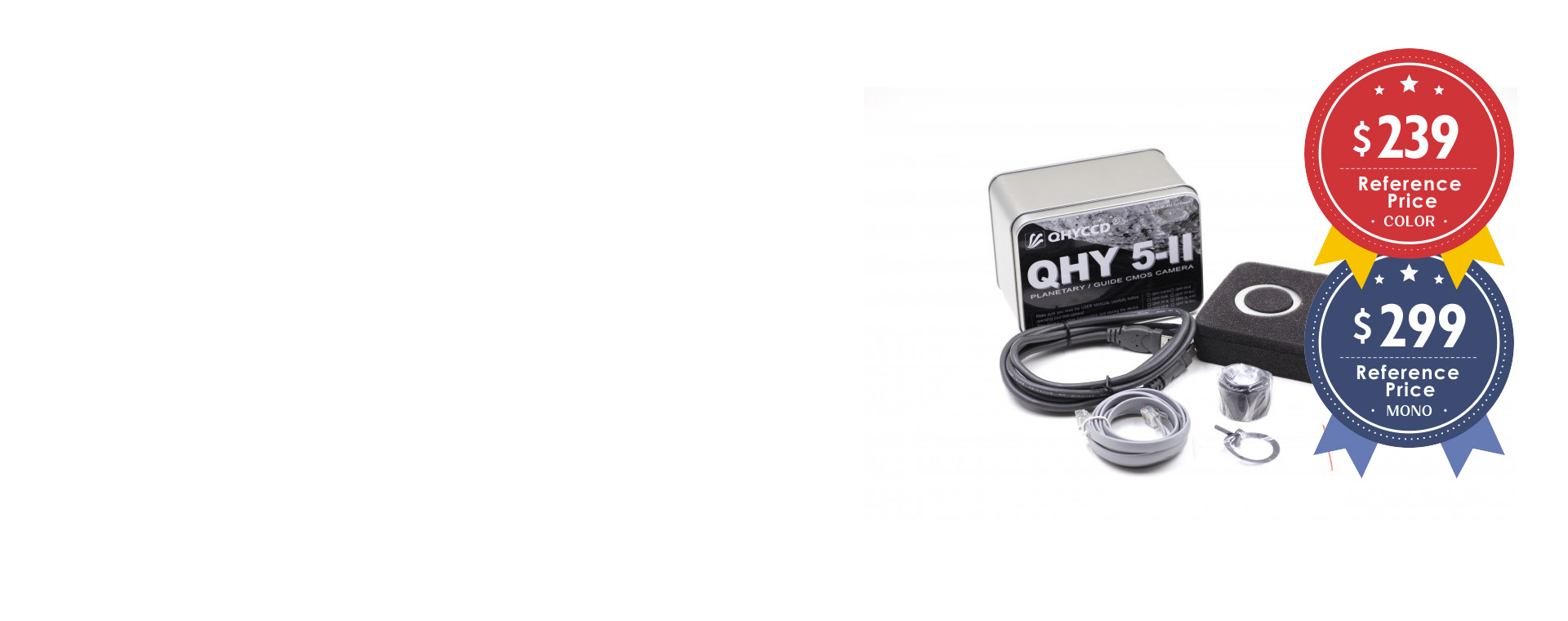 Each QHY5II Series camera comes in its own metal box with USB cable, guide cable, focus ring and 1.25" extension tube.