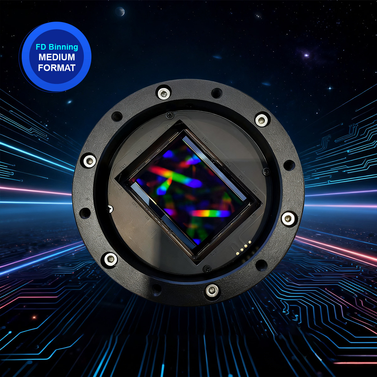QHY811 Pro, equipped with an IMX811 sensor, is a scientific CMOS camera with a 245-megapixel (64.84 mm diagonal) sensor, 2.81 μm pixel size, medium format, 16-bit ADC, and back illumination. It supports both air and liquid cooling as well as FD 2×2 binning.